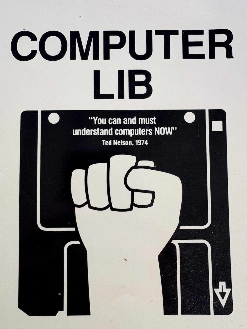 My personal copy of Ted Nelson's Computer Lib. His passion and voice about the importance of information technology as a social concern is a huge inspiration.